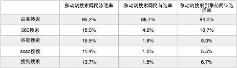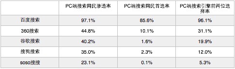 从上表中我们可以看出,在电脑端,不论是网民渗透率、***率,还是前两位选择率,百度都处于******的地位。PC端搜索引擎的格局已经基本定型,百度一家独大,直至今天也没有改变。