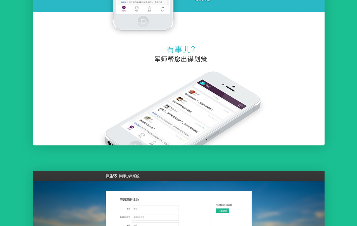 nicedesign 奈思设计与律生活携手,为律生活打造在线法律服务平台。律生活整合律师和律所资源,利用互联网及移动互联网平台,打造一个垂直性的综合法律服务资源整合平台,为产品研发、法律服务、市场营销、品牌管理等创新法律服务而服务,真正做到了集在线法律信息服务、法律电商服务、整合营销服务为一体。